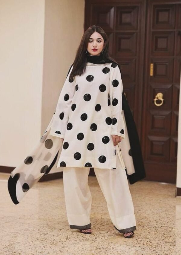 ZARQASH’s beautiful Chicken Kari cotton ensemble features intricate embroidery and elegant details