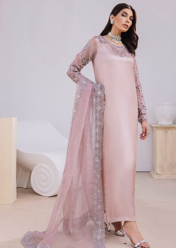 Zainab Chottani?s latest hit code worn by Ayeza Khan ? a stunning organza suit with heavy pearl-takai embroidery, elegant dupatta detailing, and luxurious craftsmanship