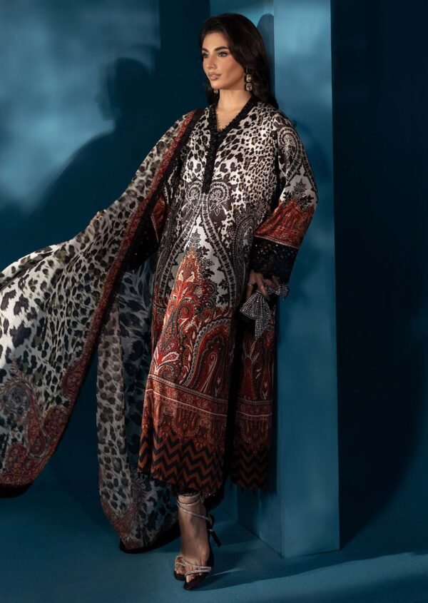 Maria B digital printed 3-piece dress with shamooz silk shirt and poly silk dupatta
