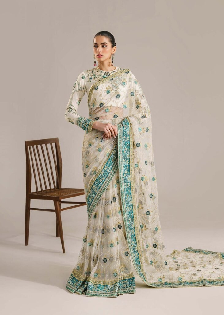 Experience the elegance of Heer Mid-Summer Collection with this stunning 3-piece formal suit. Crafted from premium Shamooz Silk, this outfit features a beautifully embroidered neckline with delicate adda work, a heavily embroidered daman with chak borders, and matching embroidered sleeves. The trouser is made from Shamooz Silk with an embroidered border for a graceful look. The ready-to-wear organza dupatta is fully sequence embroidered with a 4-sided embroidered border, making it perfect for weddings, festive events, and formal gatherings. Same as original ? Limited Stock Available!
