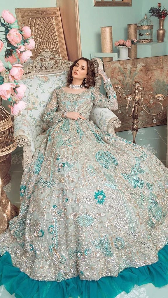 Step into timeless elegance with Ahmed Sultan?s Bridal Maxi, a luxurious ensemble worn by Hania Amir. Crafted from premium net fabric, this stunning 12-kali maxi features heavy embroidery and handwork throughout the front and back, including the bodice, borders, and sleeves. The attractive floor-length frill adds royal flair, while the embroidered dupatta with 4-sided border completes the majestic bridal look. Perfect for weddings or special occasions, this masterpiece exudes sophistication and grace.
