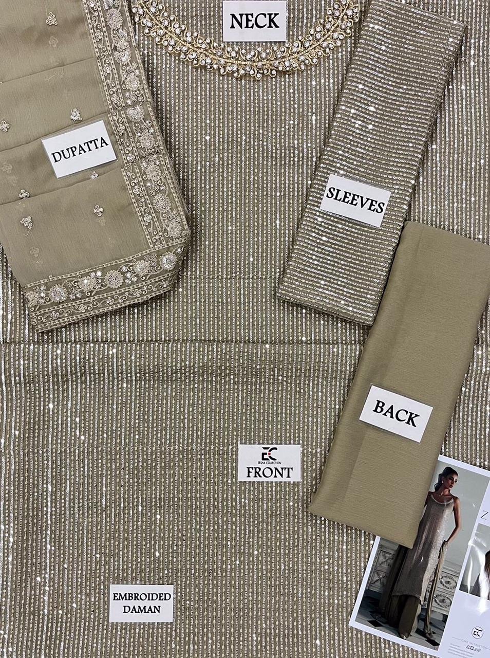 Presenting the ZAIB Chiffon Embroidered Unstitched Collection, crafted on premium chiffon with exquisite detailing. The suit features a fully heavy embroidered chiffon front paired with a heavily embroidered neckline enhanced with adda handwork. The back is kept elegant with plain chiffon, while the sleeves come with heavy sequence embroidery for a festive look.
